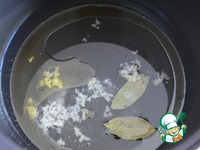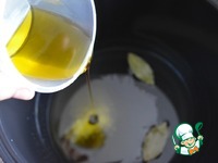 Добавляем оставшуюся соль, сахар, лавровый лист, растительное масло (я использовала оливковое). |
