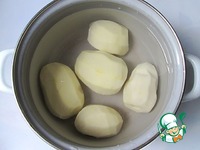 Картофель чистим, заливаем водой, подсаливаем и отвариваем до готовности, чтобы вилка или нож без усилий протыкали картофелину. |