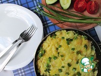 Готовый пирог украшаем нарезанным зеленым луком и в горячем виде подаем к столу. Кстати, в холодном виде он не менее вкусен! Приятного аппетита!!! |