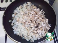 Нарезанные грибные ножки и лук помещаем в сковороду с растительным маслом, добавляем соль, перец, имбирь молотый и жарим пока лук не начнет золотиться |