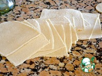 1. Срезать корку с хлеба и прокатать каждый ломтик в машине для пасты, установив ее на отметку 3. |