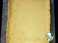 После того, как тесто подошло, раскатываем его в пласт, толщиной примерно 1 см. Переносим на противень и по краю формируем бортик. |