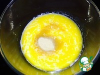 Растопить масло, влить в него молоко. Добавить дрожжи и оставить на 15 минут в теплом месте. |