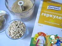 Печенье измельчаем в блендере в мелкую крошку, хлопья отмеряем стаканом объемом 200 мл. |