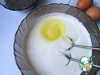 К сметанной массе добавляем яйца по одному, после каждого взбивая массу миксером на низкой скорости. |