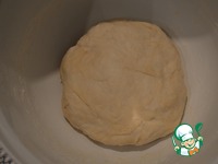 Взять один шарик, раскатать по размеру чаши мультиварки и уложить его на дно. Пальцами слегка подтянуть тесто на стенки чаши. |