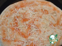Смазать двумя чайными ложками кетчупа и слегка присыпать тертым сыром. |