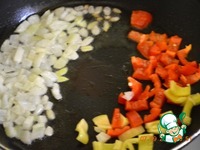 На сковороде обжарить лук и перец. Как только лук начнет подрумяниваться - добавить чеснок |