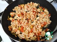 Затем добавить фарш, все перемешать, тушить 5-6 минут |