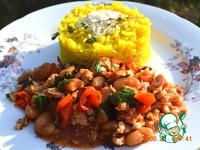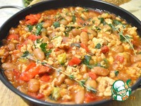 Затем посолить, поперчить, добавить травы, перемешать и добавить фасоль с соусом |