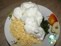 Соединить белки, сыр, зелень, и аккуратно перемешать. Добавить перец и соль по вкусу. ( я практически не солю) |