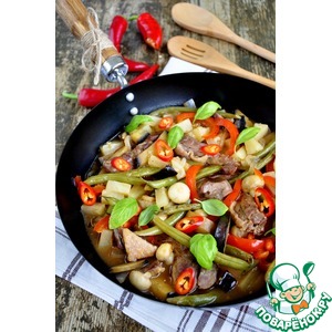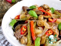 Когда овощи слегка поджаряться, слить ананасовый сок из банки в сковороду, добавить 2-3 ст. л. нарезанного консервированного ананаса. Добавить воды чтобы соус полностью покрыл овощи. Когда соус закипит, добавить соль, перец по вкусу и мелко рубленный чеснок. Загустить кукурузным крахмалом. Добавить качественный кетчуп (у меня свой http://www.povarenok .ru/recipes/show/930 87/) для кислоты и цвета.