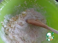 Холодное масло натереть на терке с крупными делениями. Смешать с мукой до состояния крошки. |