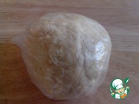 Завернуть тесто в пленку или пакет и убрать в холодильник на 30-40 минут. |