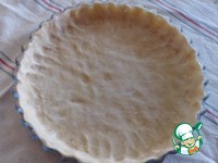 Достать тесто из холодильника, выложить в смазанную форму для выпекания с бортиками (d= 27 см) и аккуратно пальцами разровнять тесто по всей форме, не забывая про бортики. |