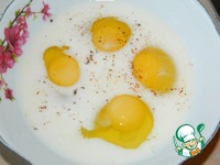 В отдельной чаше взбить яйца, молоко, соль, перец. |