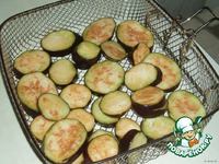 Тем временем займемся баклажанами. Баклажаны отжать, чтобы не были горькими. Раньше приходилось обжаривать их на сковороде, сейчас я жарю их во фритюрнице. |