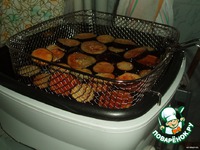Тем временем баклажаны уже готовы, закрепить сетку с баклажанами в фритюрнице, чтобы стекло излишнее масло. |