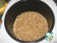 Чашу мультиварки смазываем маслом и аккуратно перекладываем в неё готовое тесто, сверху равномерно распределяем халву с орехами на поверхности. |