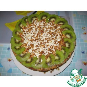 Украшаем пирог фруктами, наливаем чай и угощаемся! |