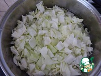 Начинаем с капусты, так как она дольше всех ингредиентов готовится. Нарезаем её кубиками. |