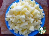 Картошку тоже кубиками нарезаем. Жарим на сковороде до золотистой корочки. |