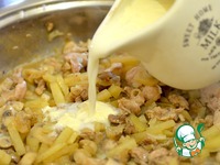 И молоко. Тушите до частичного испарения молока. Добавьте мелко нарезанный имбирь по желанию. |