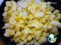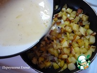 Влить в поджаренный картофель яичную массу. |