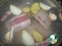 Лук, чеснок, имбирь, рис,- служат " техническими продуктами" для бульона |