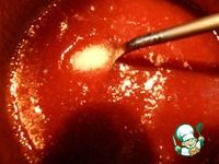 Добавляем соевый соус, корицу, мускатный орех. Провариваем на медленном огне минут 5. Добавляем набухший желатин, хорошенько перемешиваем. |