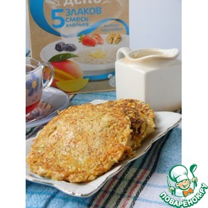 Вылить молоко и высыпать хлопья. Тщательно перемешать. Можно жарить блинчики на масле. Я просто добавила масло в тесто и жарила на блинной, сухой сковороде. Подавать горячими со сметаной. |