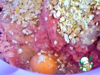 Смешивае хлопья, фарш, яйца. Кладем имбирь и соль. Перемешиваем и лставляем минут на 10 настояться. |