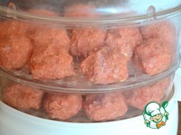 Формируем мокрыми руками тефтельки и размещаем в пароварке. |