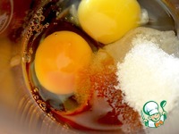 В чаше блендера соедините яйца и сахар. |