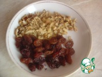 5)Для начинки :Смешать пшенных хлопьев "Мистраль", изюм грецкие орехи. Добавить порезанную мякоть от яблок. |
