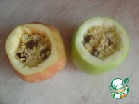 6)в яблоки положить начинку не доходя до края 1,5-2 см. Залить водой с медом. |