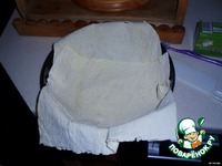 Пол-литра кефира смешиваем с яйцами, солим. 2 -й лист лаваша рвем на куски, обмакиваем в кефирную смесь, вынимаем куски из смеси, выжимаем и в скомканном виде укладываем на лист в форме. |