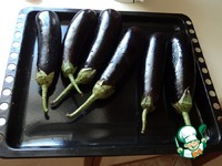 Для начала споласкиваем баклажаны, протыкаем их в нескольких местах вилочкой или ножом затем укладываем на противень и запекаем в духовке при температуре 180-200*С, пока они станут мягкими. |