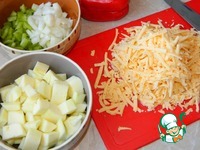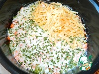 Посыпаем зеленым луком и натертым сыром. Готовим в режиме "Выпечка" 50 минут. |
