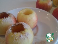 Вырезать середину яблок, посыпать сахарной пудрой (у меня с добавлением корицы) и оставить постоять. |