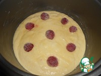 Смесь выливаем в чашу мультиварки. Можно украсить ягодами. Ставим режим "Выпечка" на 30 минут |