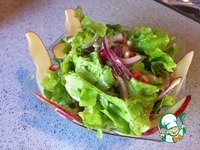 Описание: Оригинальный салат с зернами граната. Получился легкий и вкусный. Его изюминка в соусе приятного кисло-сладкого вкуса. Соус можно приготовить впрок - он хорошо хранится в холодильнике. Не судите строго - это мой дебют. Проверила на сайте - вроде бы похожих салатов еще нет.