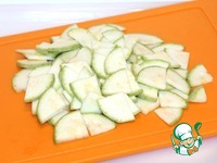 Кабачок вымыть, нарезать тонкими ломтиками. |