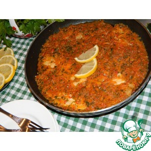 Заливаем этим соусом рыбу и оставляем готовиться под крышкой минут 20. Горячим сразу подаем на стол. Можно украсить кусочком лимона. Приятного аппетита! |