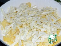 Молодой картофель очистить, нарезать небольшими кусочками. Капусту нарезать и выложить вместе с картофелем на разогретую сковороду с подсолнечным маслом. |