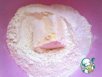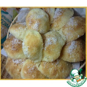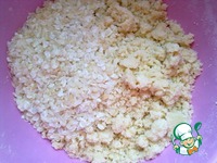 Смешать сливочное масло с сахаром, добавить муку, 50 грамм кокосовой стружки, ванилин и разрыхлитель теста. Все хорошо перемешать. |