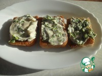 Гренки натереть чесноком с двух сторон, |