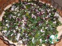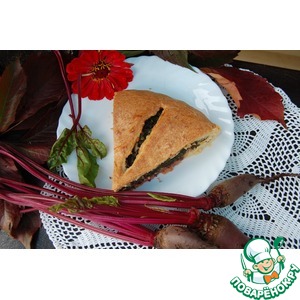 Тесто разделить на 2 части. Раскатать два коржа толщиной 0,5 см. Один корж выложить в форму, сделать наколы вилкой. По центру выложить начинку горкой. |