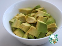 Авокадо разрезать пополам, удалить косточку и снять кожуру. Нарезать небольшими кубиками и сбрызнуть лимонным соком. |