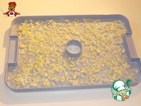 Горох поместите в лоток дегидратора, застеленный пергаментом. |